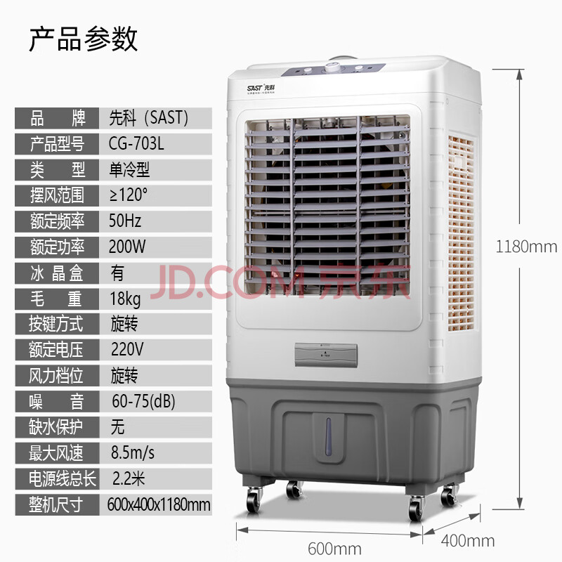 商品相册:先科 (SAST) 大型可移动水冷风机/家用商用空调扇/网吧餐厅食堂制冷风扇/交流定频/车间工业扇CG-703L第1张/共9