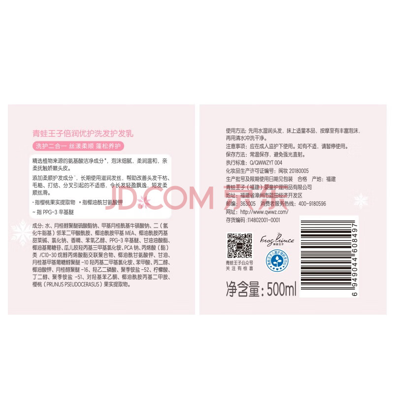 商品相册:青蛙王子儿童洗发水 弱酸无硅油 氨基酸洗发露 洗发护发二合一女童洗发液第1张/共8