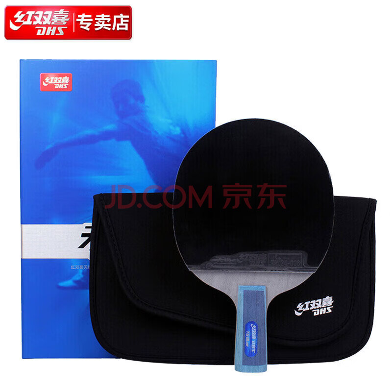 商品相册:红双喜DHS乒乓球拍 直拍天极蓝双面反胶皮兵拍TB6 带拍套第1张/共7