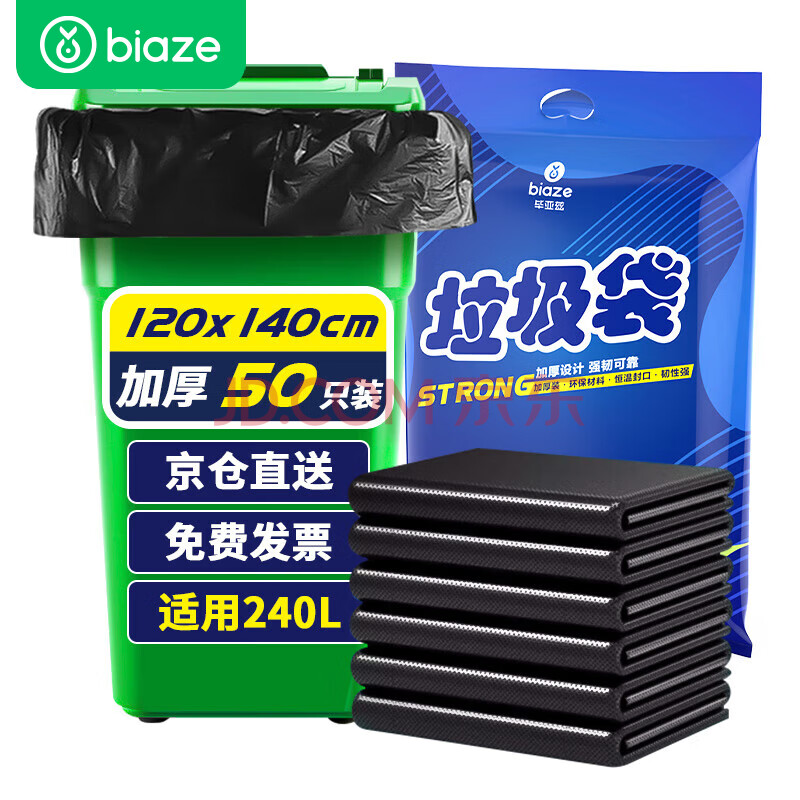 商品相册:毕亚兹物业平口垃圾袋黑色120*140cm50只单面1.8丝特大号加厚酒店第1张/共8