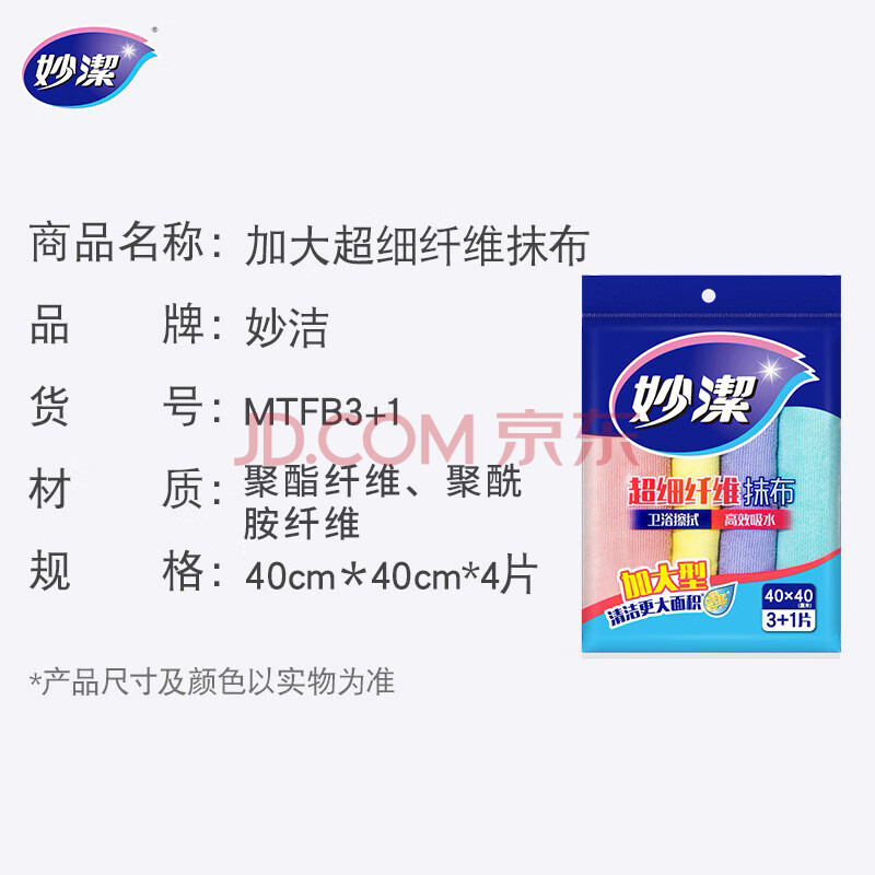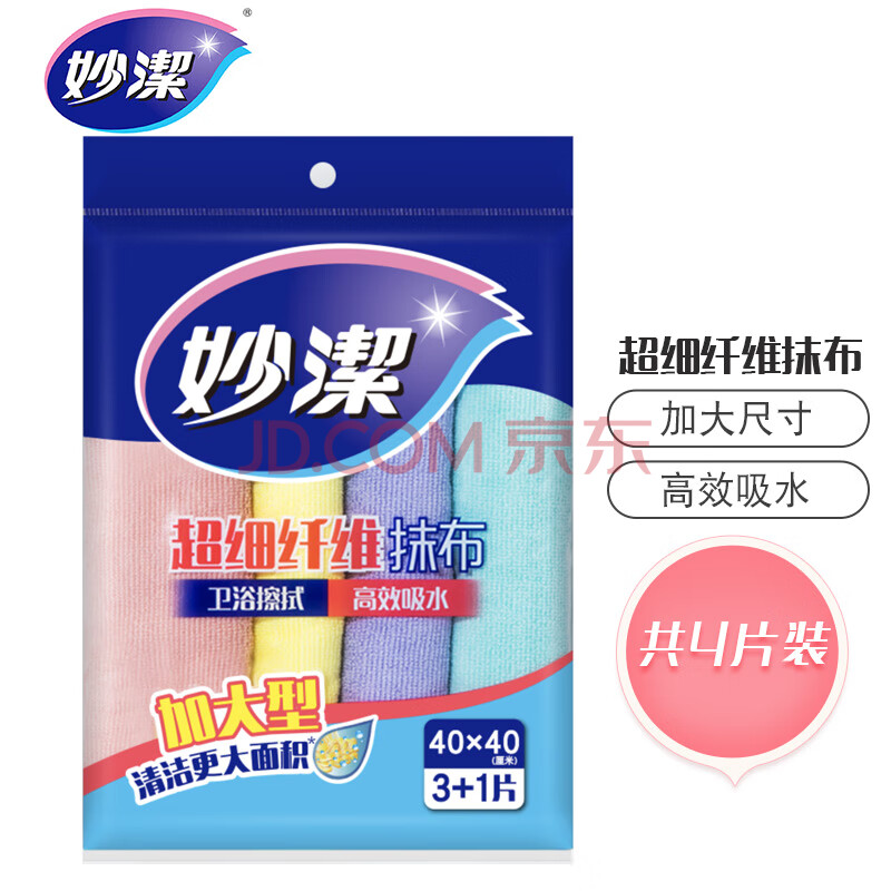 商品相册:妙洁加大型超细纤维抹布 40*40cm4片装 洗车毛巾吸水神器 擦汽车专用第