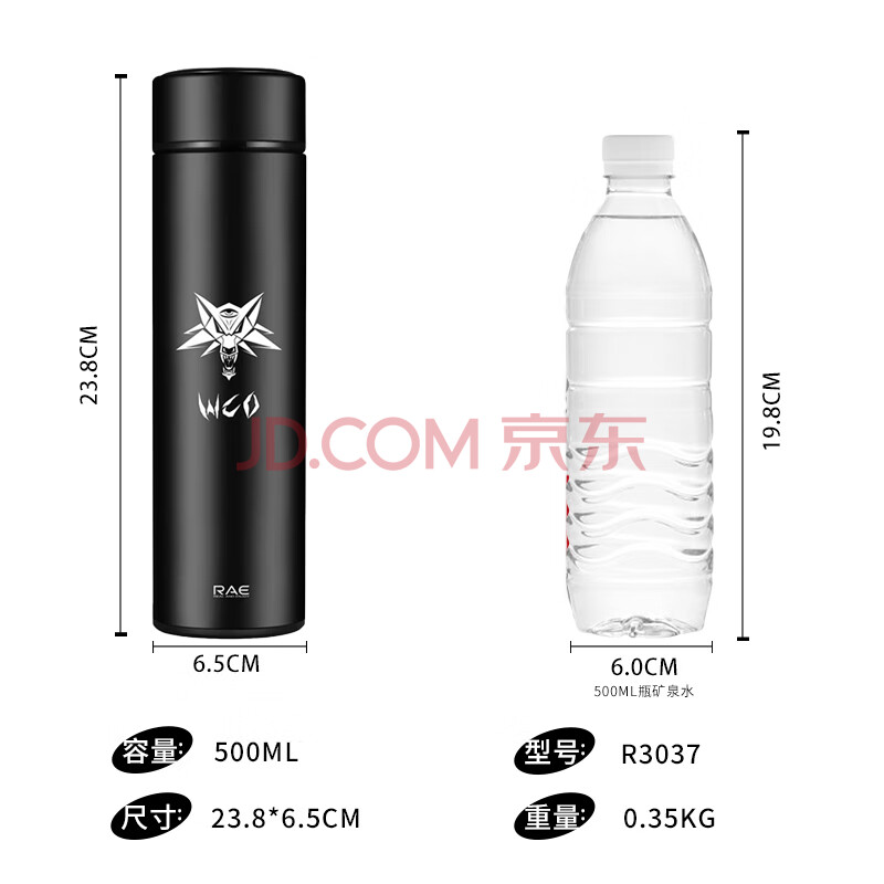 商品相册:然也保温杯学生316L不锈钢泡茶杯子500mlWCO黑色R3037第