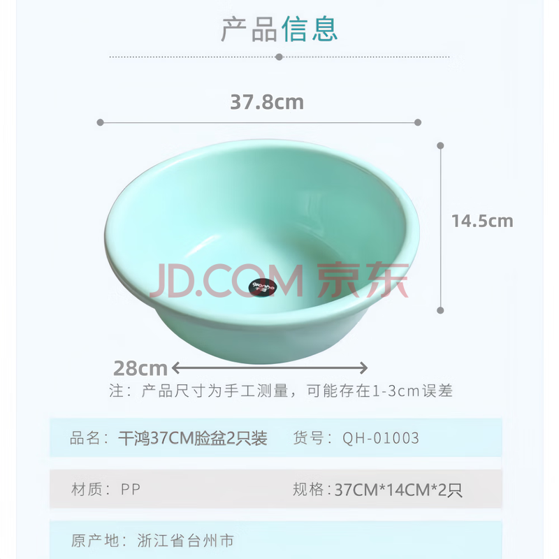 商品相册:千鸿 脸盆37cm2只装洗脸盆洗脚盆洗手盆QH-01003塑料盆第