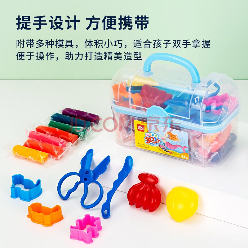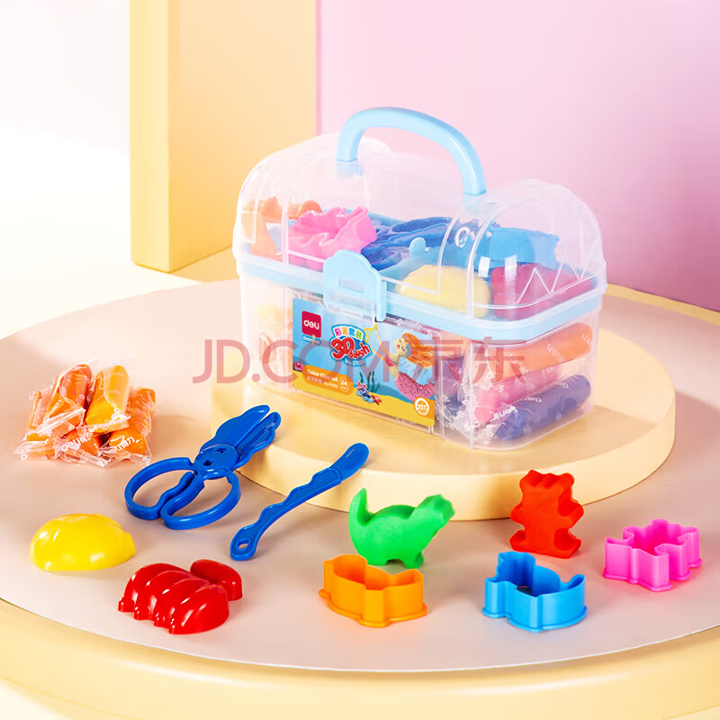 商品相册:得力(deli)24色彩泥 橡皮泥非轻型粘土玩具手工DIY盒装黏土套装 手提收纳盒装儿童生日礼物蓝开学文具第1张/共6