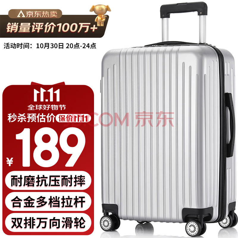 商品相册:梵地亚行李箱男大容量28英寸学生旅行箱拉杆箱包女万向轮密码皮箱子银第1张/共9