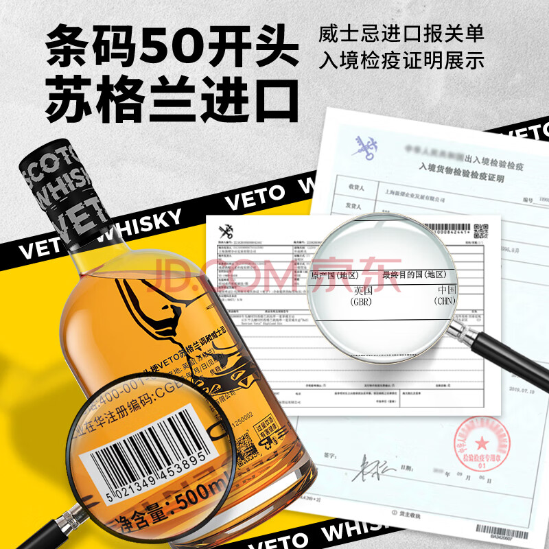 商品相册:VETO调和麦芽威士忌礼盒装 500ml 波本桶 苏格兰高地产区原瓶进口42度第
