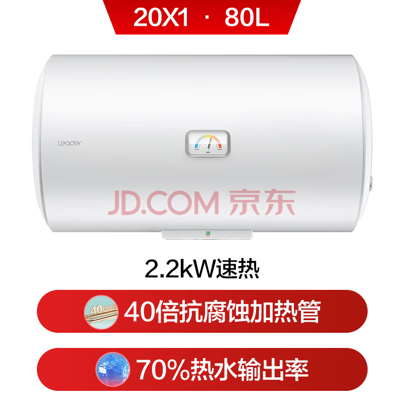 商品相册:海尔出品统帅 80升电热水器京东自营上门安装2200W节能速热家用安全浴储水式LEC8001-20X1第