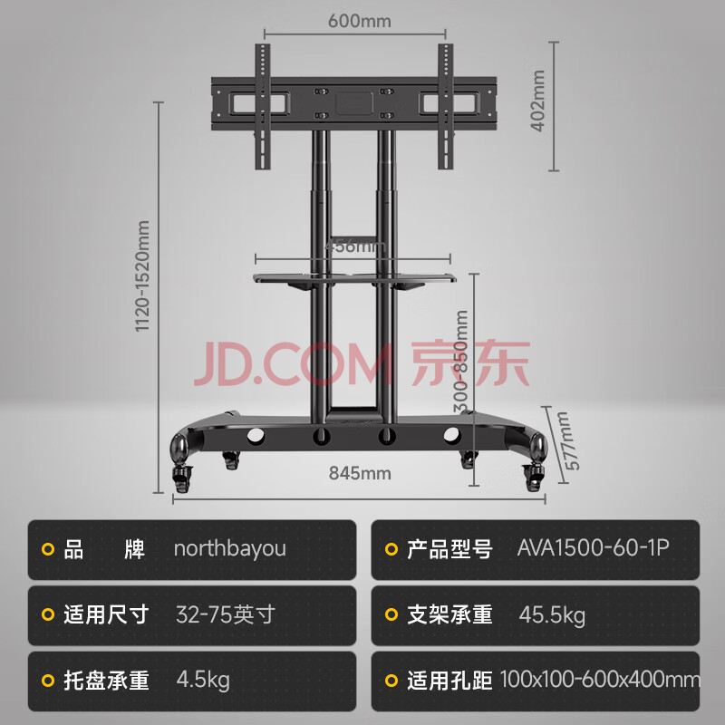 商品相册:NB AVA1500-60-1P(32-75英寸)电视支架落地移动电视支架会议一体机移动推车通用电视移动挂架推车第