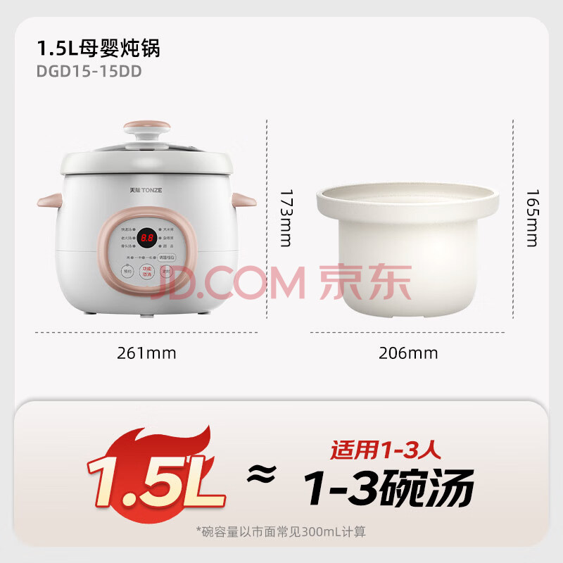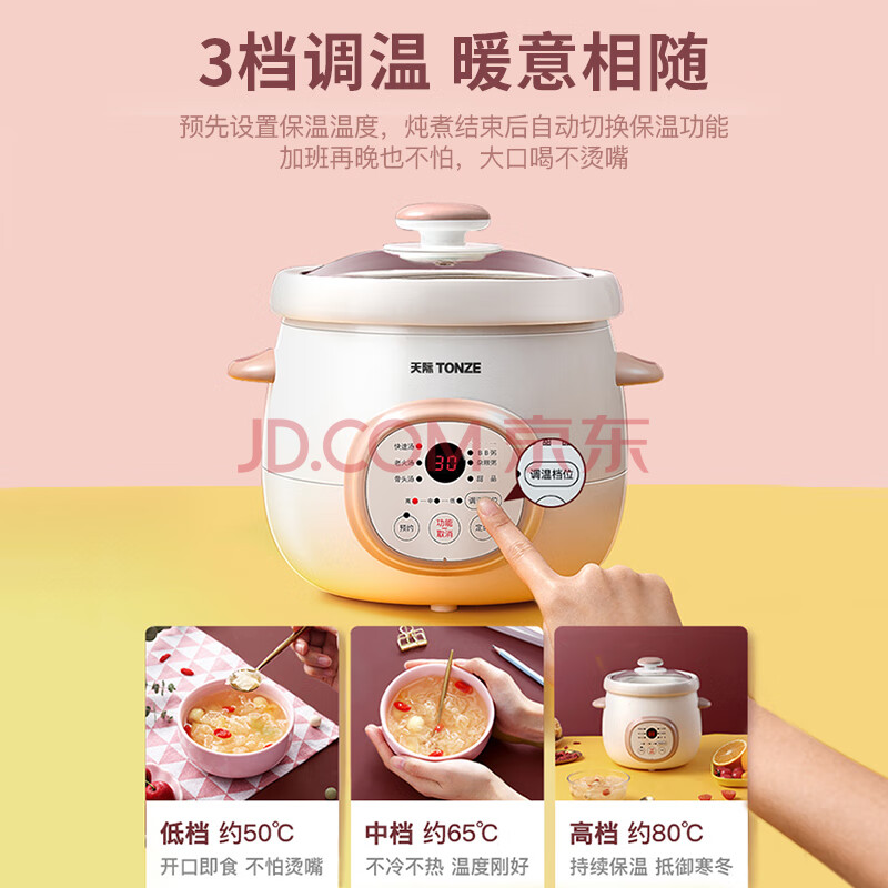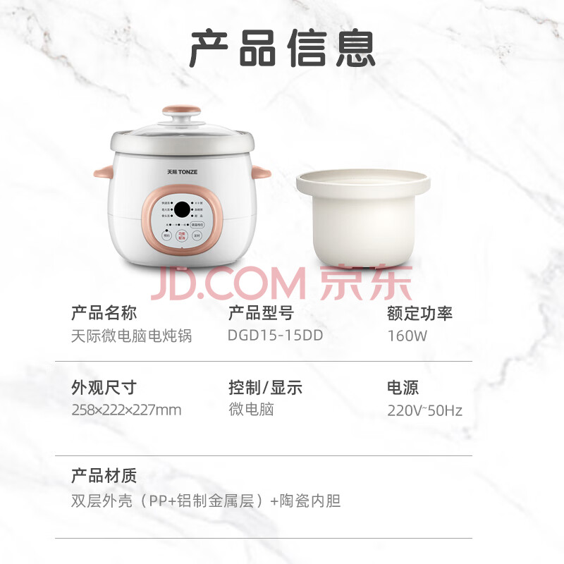 商品相册:天际(TONZE)电炖锅 电炖盅 煲汤锅炖汤锅 婴儿煮粥锅bb煲 熬粥养生 家用智能预约 陶瓷胆 DGD15-15DD 1.5升第