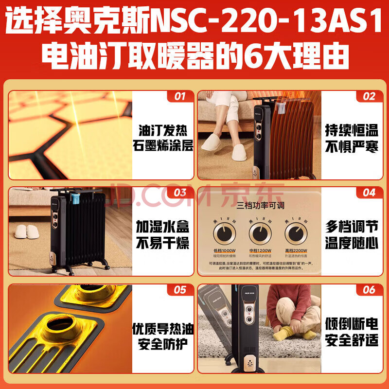 商品相册:奥克斯(AUX)【石墨烯速热】取暖器/取暖器家用/取暖电器/电暖器/电暖气片烤火炉油丁电暖炉13片石墨烯电热油汀第