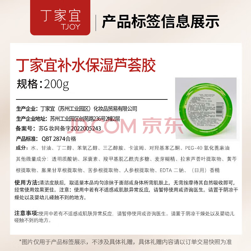 商品相册:丁家宜芦荟胶补水保湿舒缓晒后修复睡眠面膜国货护肤品200g第