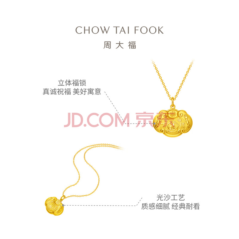 商品相册:周大福儿童宝宝百福长命锁黄金吊坠(工费160)约4.6g EOF98礼物第