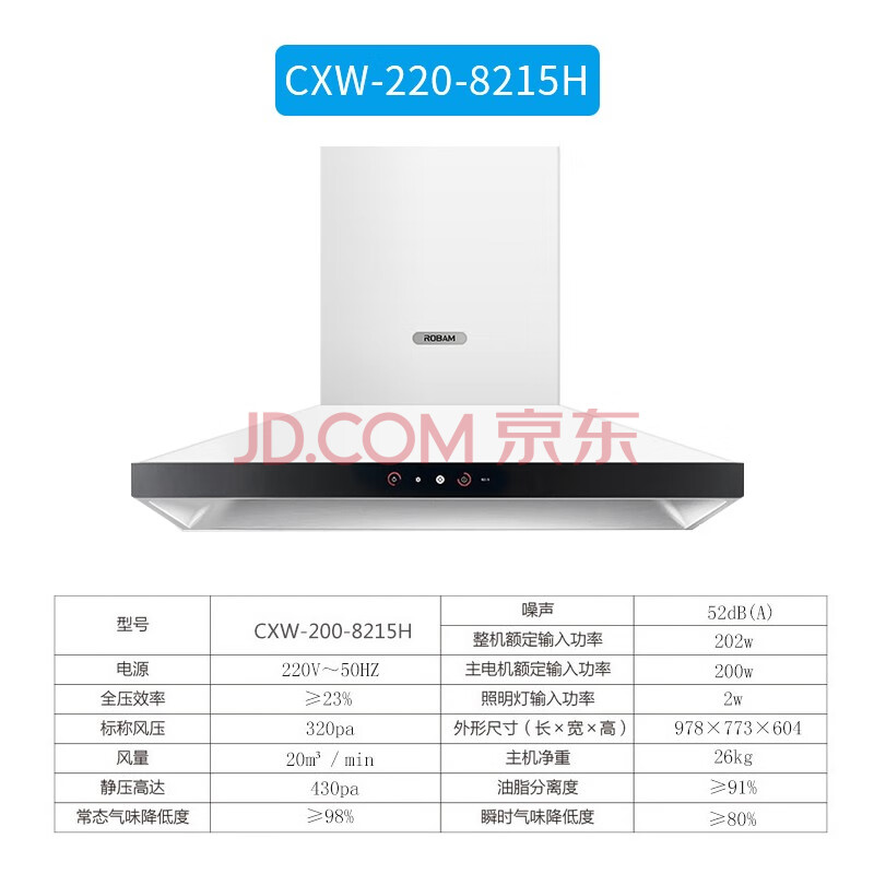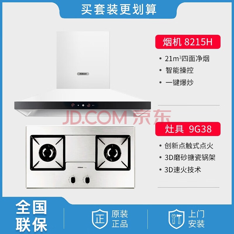 商品相册:老板( Robam) 欧式 大风压 龙卷吸力抽油烟机燃气灶套装 8215H+9G38(线下同款)第