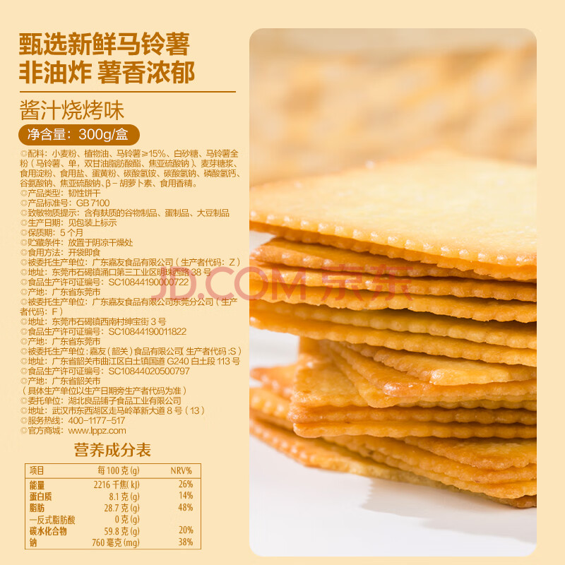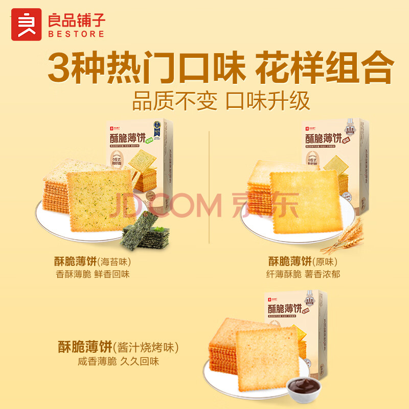 商品相册:良品铺子 薄脆饼干 酥脆薄饼300g饼干休闲零食早餐儿童零食 酱汁烧烤味第