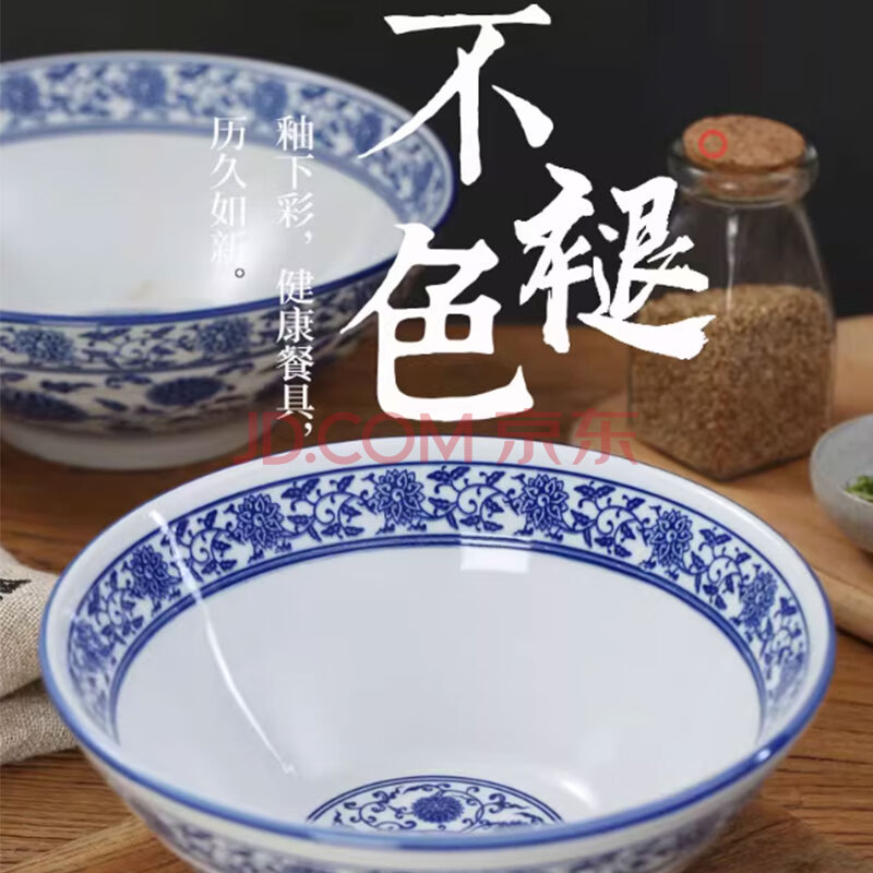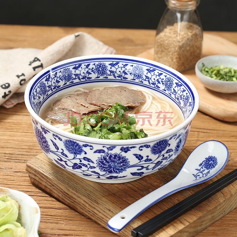 商品相册:传旗 青花瓷面碗 7英寸釉下彩陶瓷汤碗拉面碗泡面碗宽口大碗餐具第