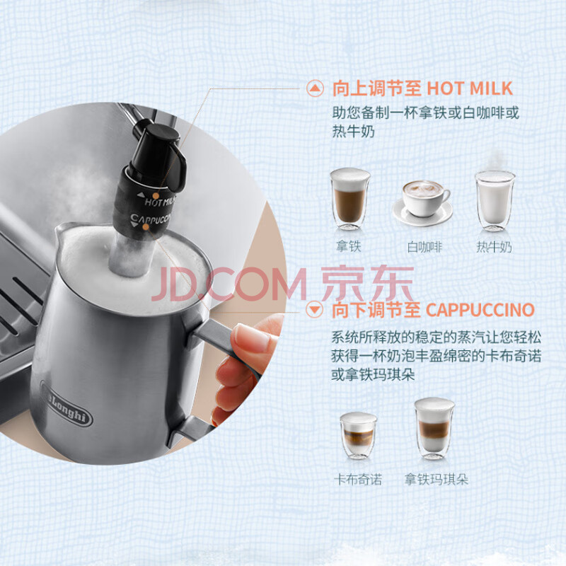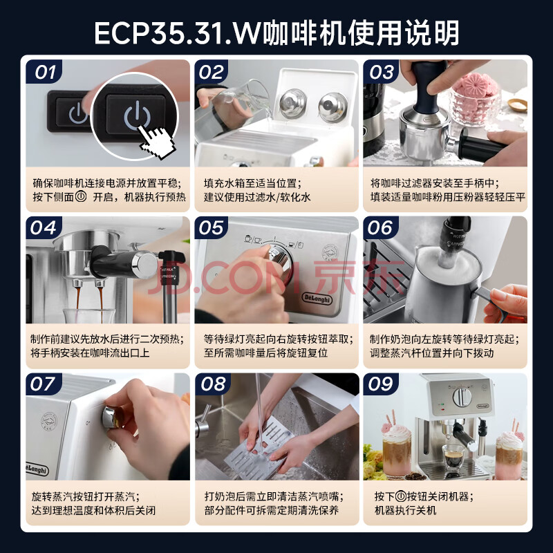 商品相册:德龙(Delonghi)咖啡机 家用半自动咖啡机 美式意式浓缩小型15bar泵压式 手动可调节奶泡系统 ECP35.31.W 白色礼物第