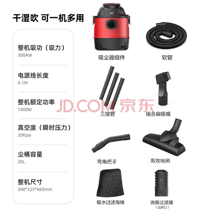 商品相册:小狗吸尘器干湿吹多用大吸力大功率桶式家用20L大容量吸尘机D-807 工业吸尘器商用车用保洁开荒第