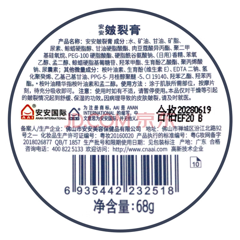 商品相册:安安金纯 A'Gensn 安安皴裂膏防干防裂防冻滋润护肤68g*3第