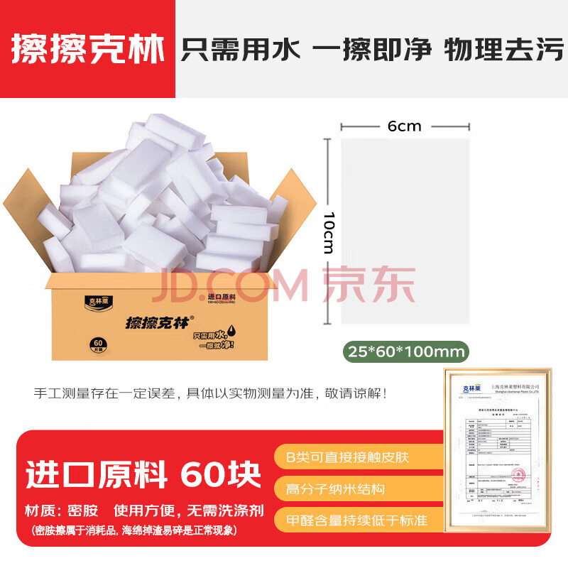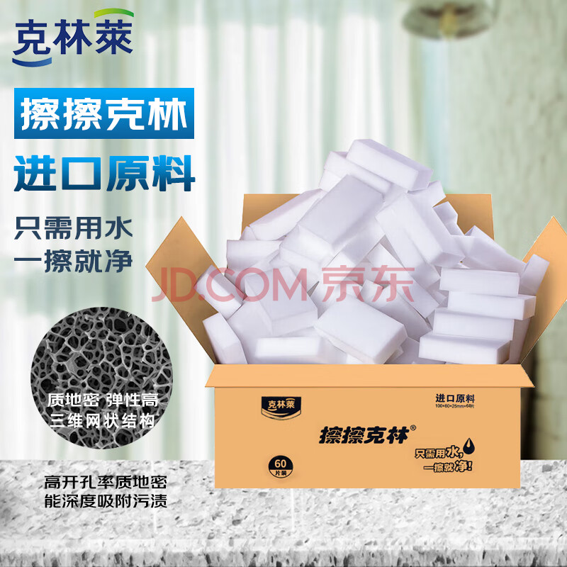 商品相册:克林莱擦擦克林纳米海绵密胺擦25x60x100mm60片箱装去污神奇魔术擦厨卫第1张/共8