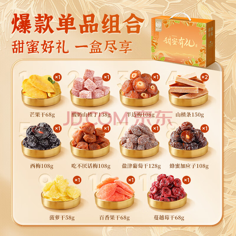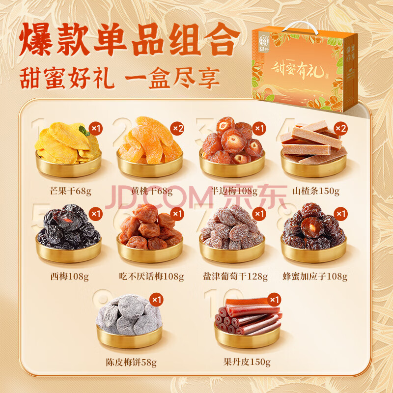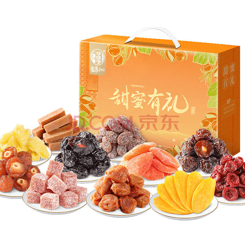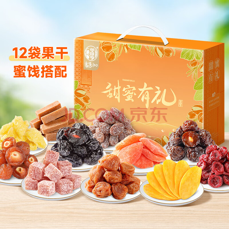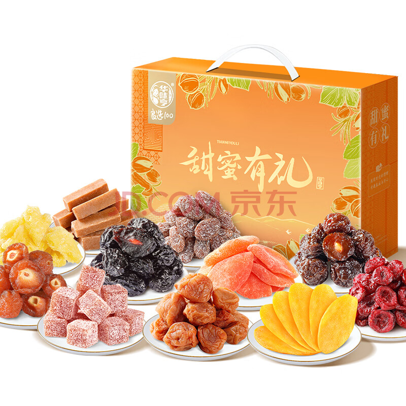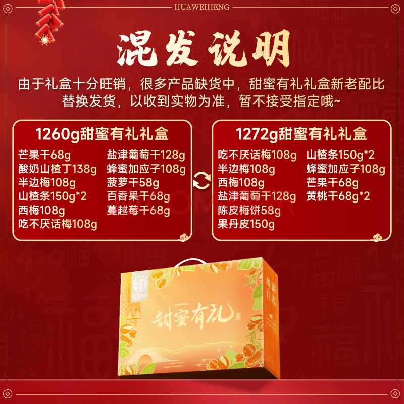 商品相册:华味亨甜蜜有礼1260g/盒蜜饯果干礼盒零食休闲果脯果脯西梅团购第1张/共7