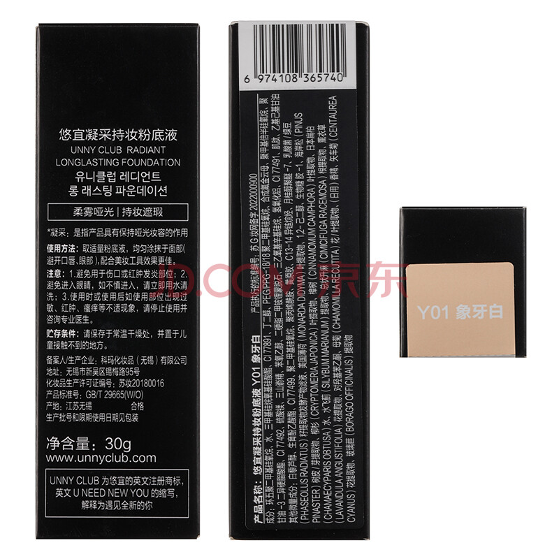 商品相册:悠宜(unny club)锁采持妆粉底液30ml y01象牙白(M)遮瑕控油不易暗沉水润第