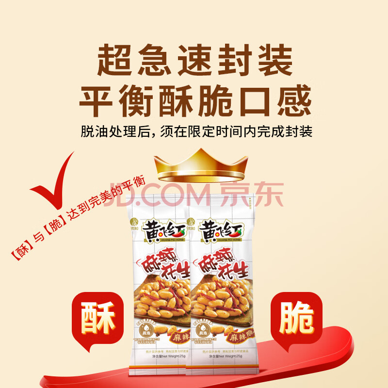 商品相册:黄飞红(HUANGFEIHONG)麻辣花生米25g*5袋 脱油花生休闲零食下午茶 下酒菜 坚果炒货第1张/共9