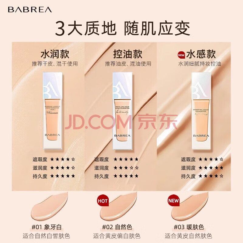 商品相册:芭贝拉(BABREA)恒采持妆粉底液30ml 01象牙白持久控油第