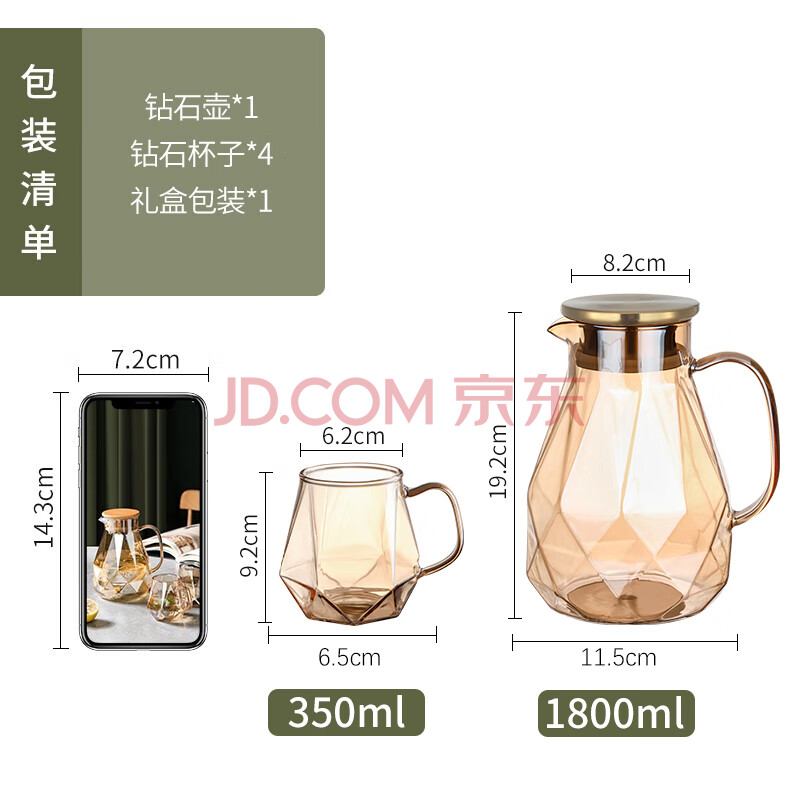 商品相册:唯铭诺水杯套装玻璃杯耐高温冷水壶晾水壶养生花茶壶茶杯一壶四杯1.8L第