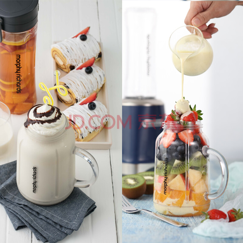 商品相册:摩飞电器(Morphyrichards)料理机便携式果汁机 家用料理榨汁杯 轻松制作蔬果饮品 新潮梅森杯随行杯双杯标配 MR9500蓝色第