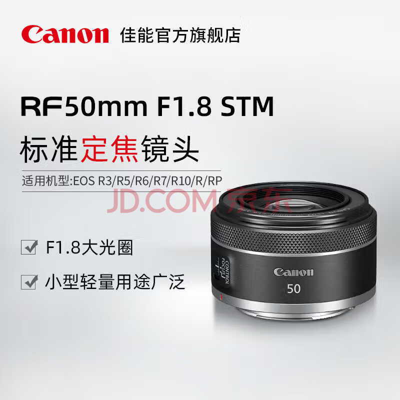 商品相册:佳能(Canon)RF50mm F1.8 STM 大光圈定焦镜头 微单相机人像镜头 RF卡口适用r50 r10 r7 r62 小痰盂镜头第