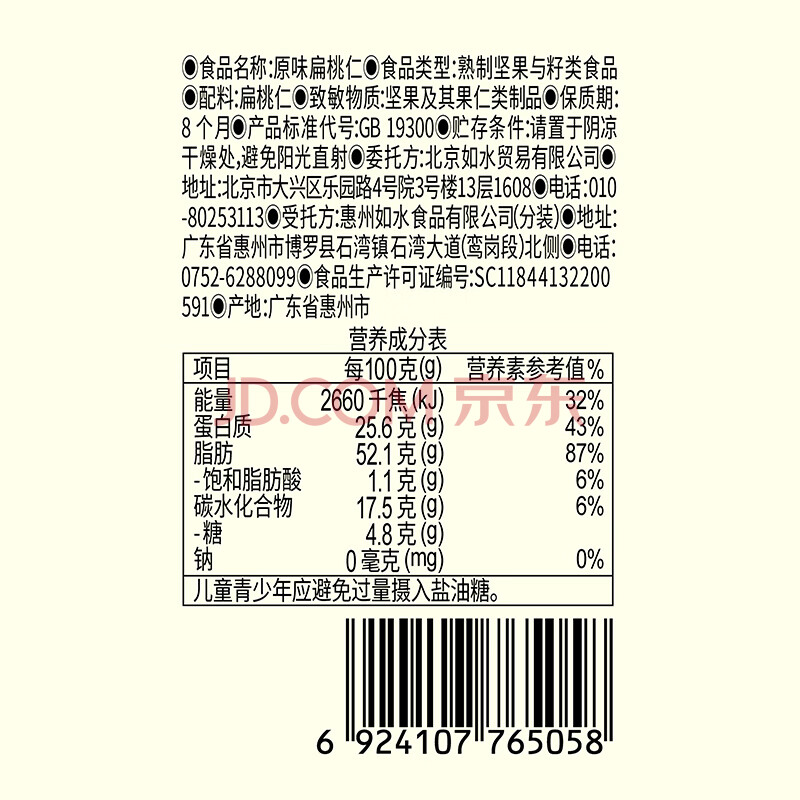 商品相册:如水 原味扁桃仁450g/罐 巴旦木仁大杏仁健康无添加剂干果炒货零食第