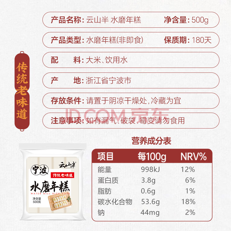 商品相册:云山半宁波水磨年糕条炒年糕条方便速食材宁波慈城特产部队火锅配料500g第