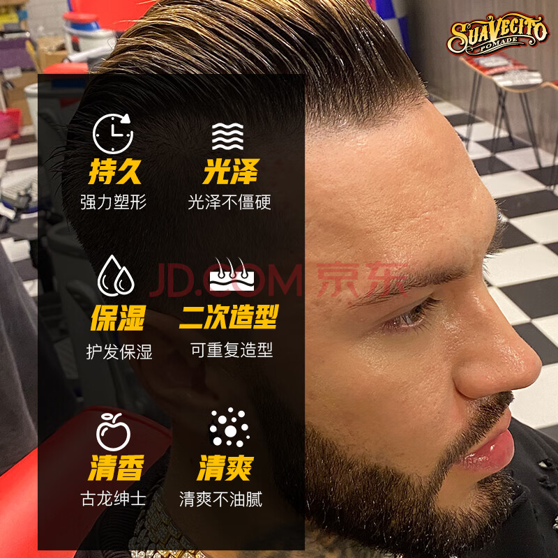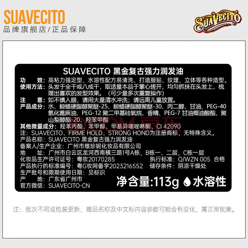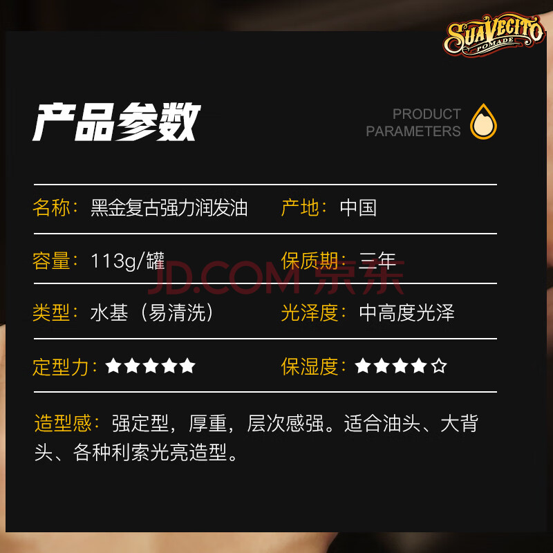 商品相册:SUAVECITO骷髅头黑金发油113g古龙男士定型大背头油头飞机头啫喱膏造型发蜡第1张/共9