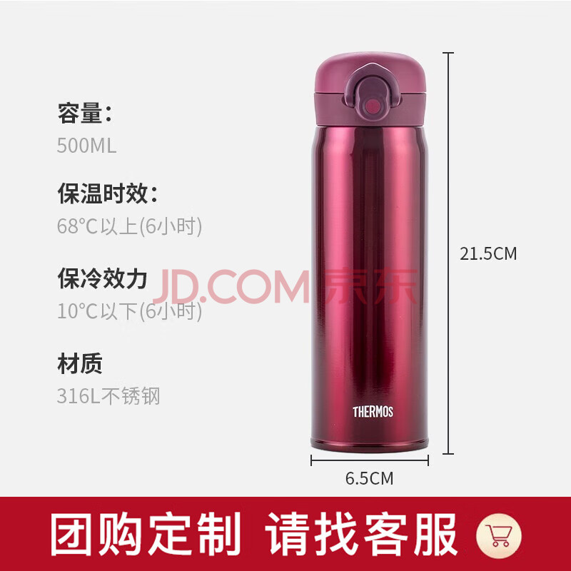 商品相册:膳魔师(THERMOS)保温杯500毫升男女大容量316不锈钢学生儿童保冷水杯TCMO-500S RD第