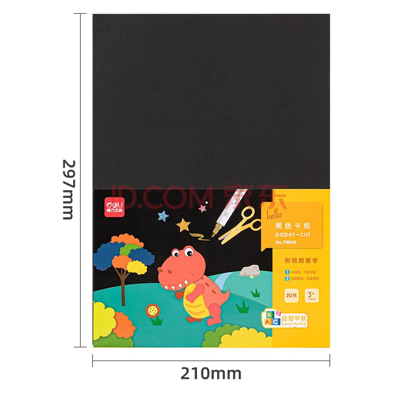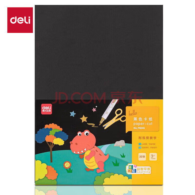 商品相册:得力(deli)20张A4黑色卡纸硬厚卡纸学生幼儿园手工折纸彩纸剪纸美术手绘纸DIY儿童礼物开学文具第