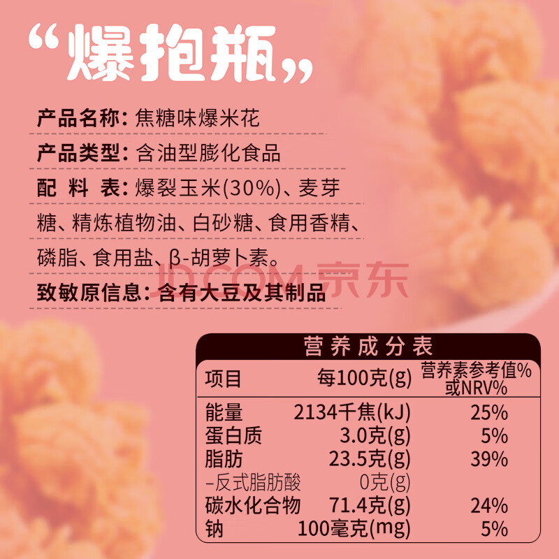 商品相册:吉利火星爆米花焦糖味819g 网红超大爆抱瓶玉米爆米花儿童零食第