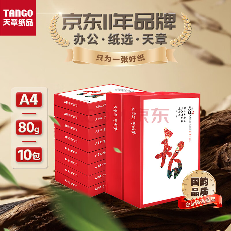 商品相册:天章 (TANGO)天章风A4纸打印纸 80g 500张*10包 双面打印复印纸 顺滑畅打高性价比 整箱5000张【国潮品质款】第