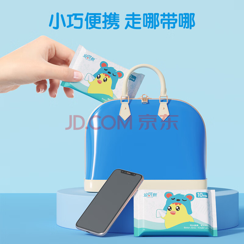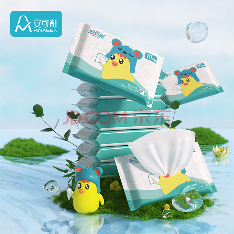 商品相册:安可新婴儿手口湿巾10抽*10包宝宝湿纸巾便携小包学生儿童出行随身装第