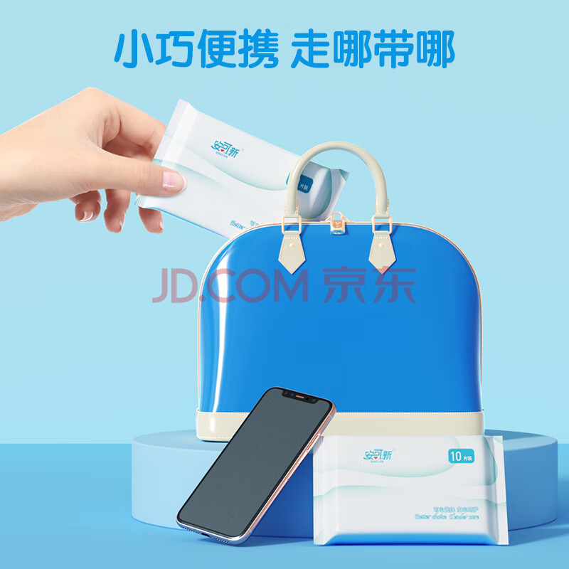商品相册:安可新婴儿湿巾手口纯水湿纸巾10片*20包宝宝擦脸小包上学出行便捷装第