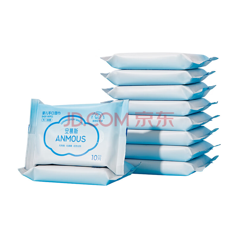 商品相册:安慕斯婴儿手口便携布湿巾10抽*10包 宝宝湿巾纸 加厚湿巾迷你小包第