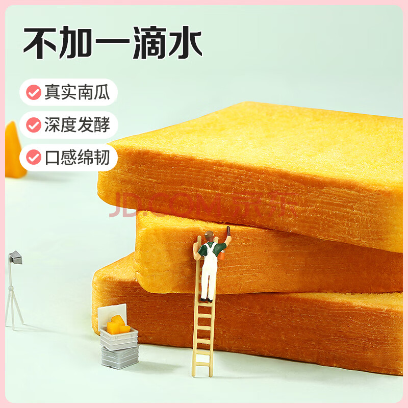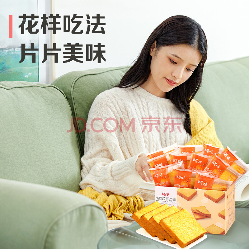 商品相册:百草味南瓜蔬纤吐司500g 吐司早餐面包蛋糕糕点点心企业团购休闲零食第