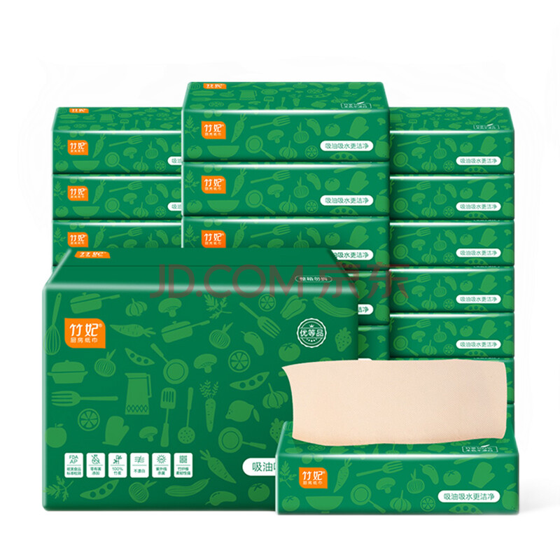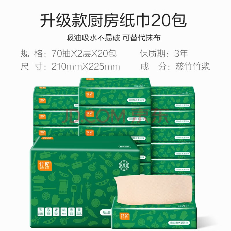 商品相册:竹妃 zofee 厨房用纸抽纸吸油纸 2层70抽*20包竹浆本色擦手纸洗碗纸 第