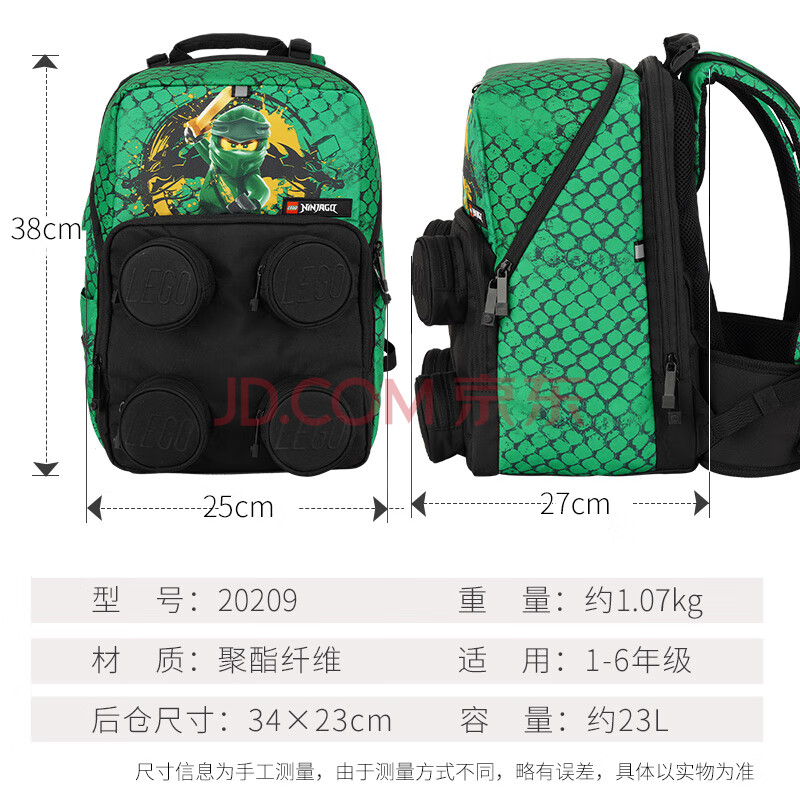 商品相册:乐高(LEGO)书包学生双肩背包1-5年级护脊减负忍者劳埃德绿 20209 礼物第