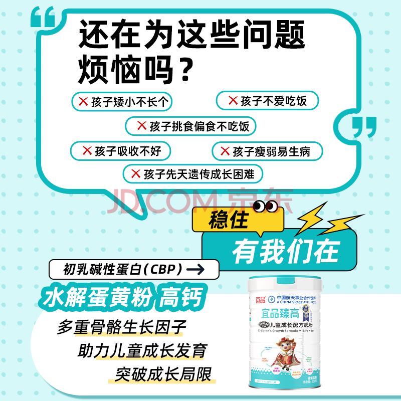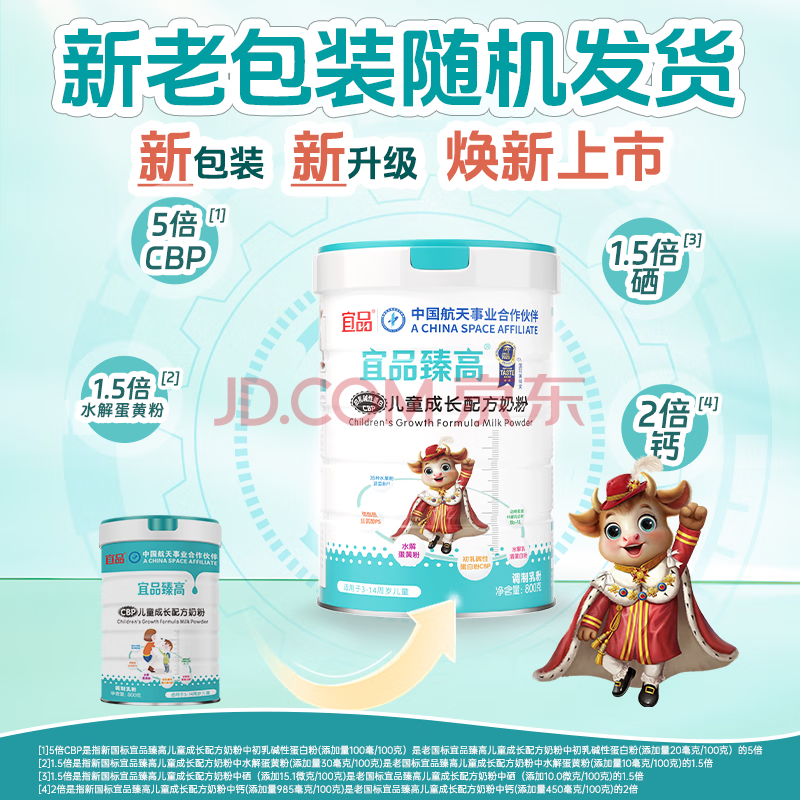 商品相册:宜品臻高CBP4段儿童成长奶粉3-15岁内青少年骨骼发育高钙奶粉800g第