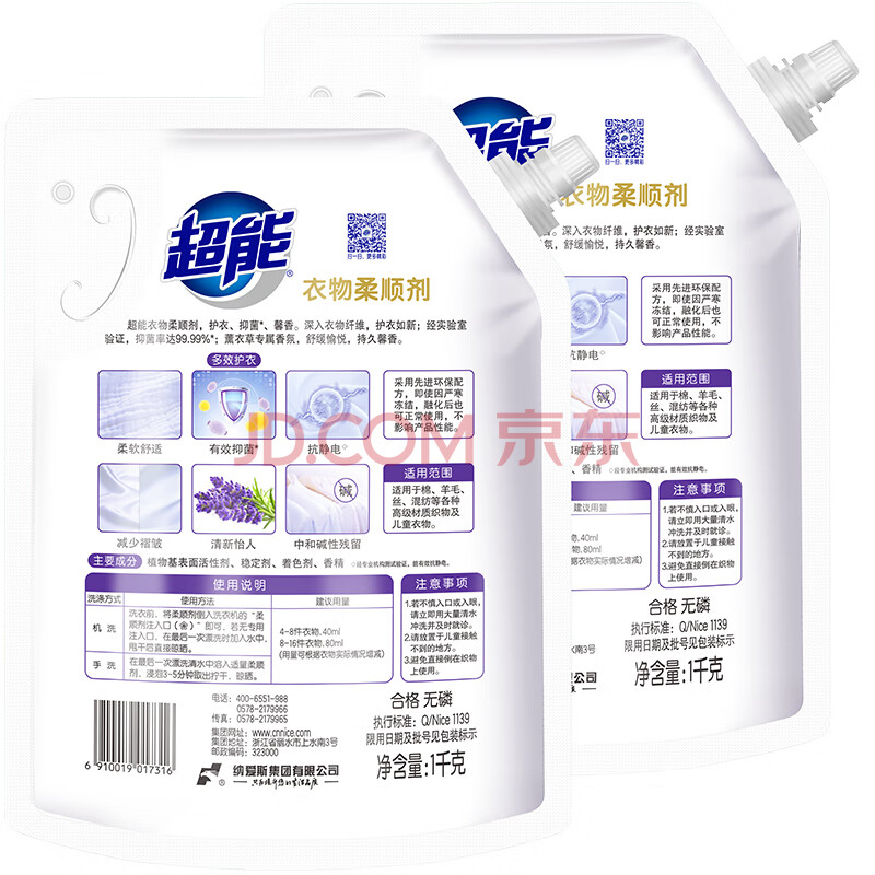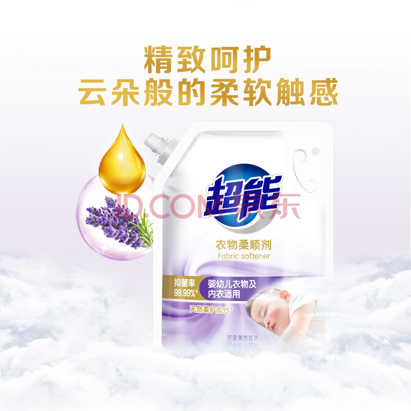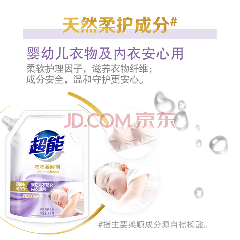 商品相册:超能衣物柔顺剂 4斤 薰衣草香 抑菌率99.99% 婴幼儿衣物适用 持久留香第