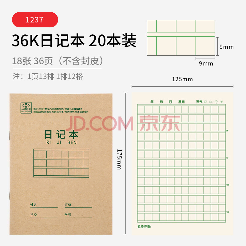 商品相册:惠朗(huilang)36K18张小学生日记本作业本软抄本笔记本子文具 20本装 1237第