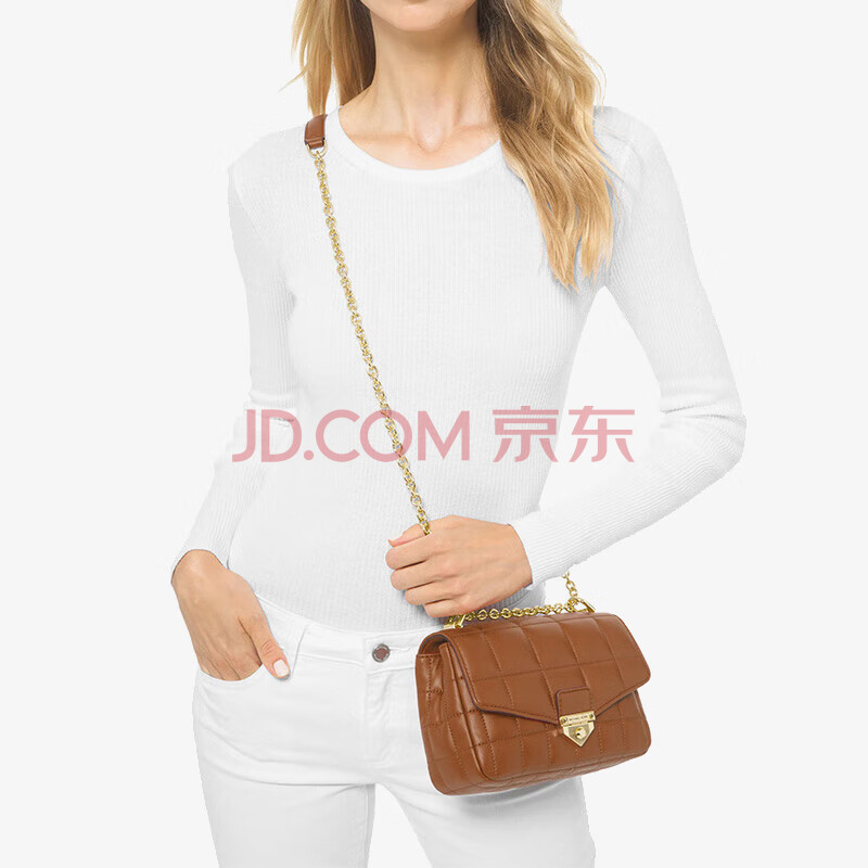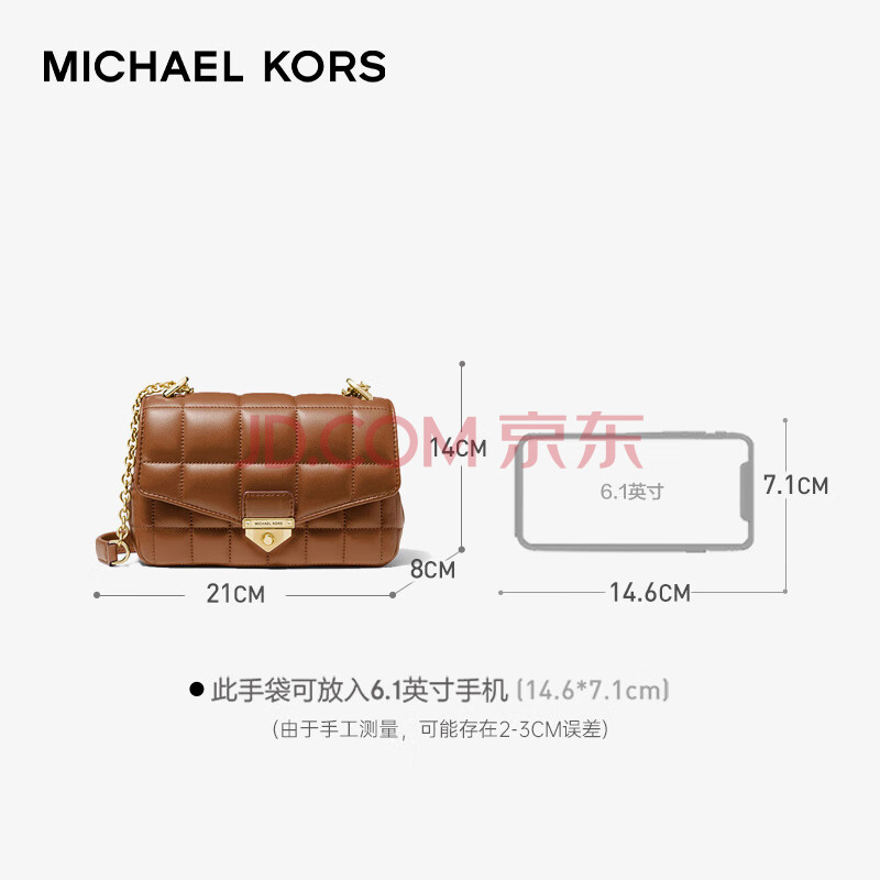 商品相册:MICHAEL KORS礼物轻奢MK女包SOHO方格链条单肩斜挎包小号牛皮棕第