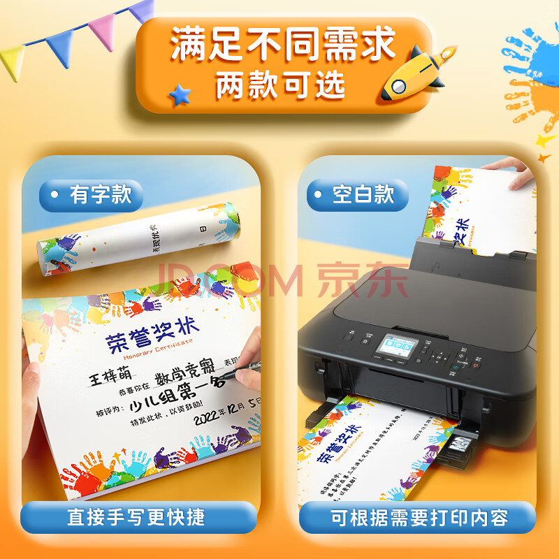 商品相册:金值100张4款有字奖状纸 A4小学生奖状教师用儿童幼儿园一年级模板大号可打印荣誉证书卡通表扬信第1张/共3