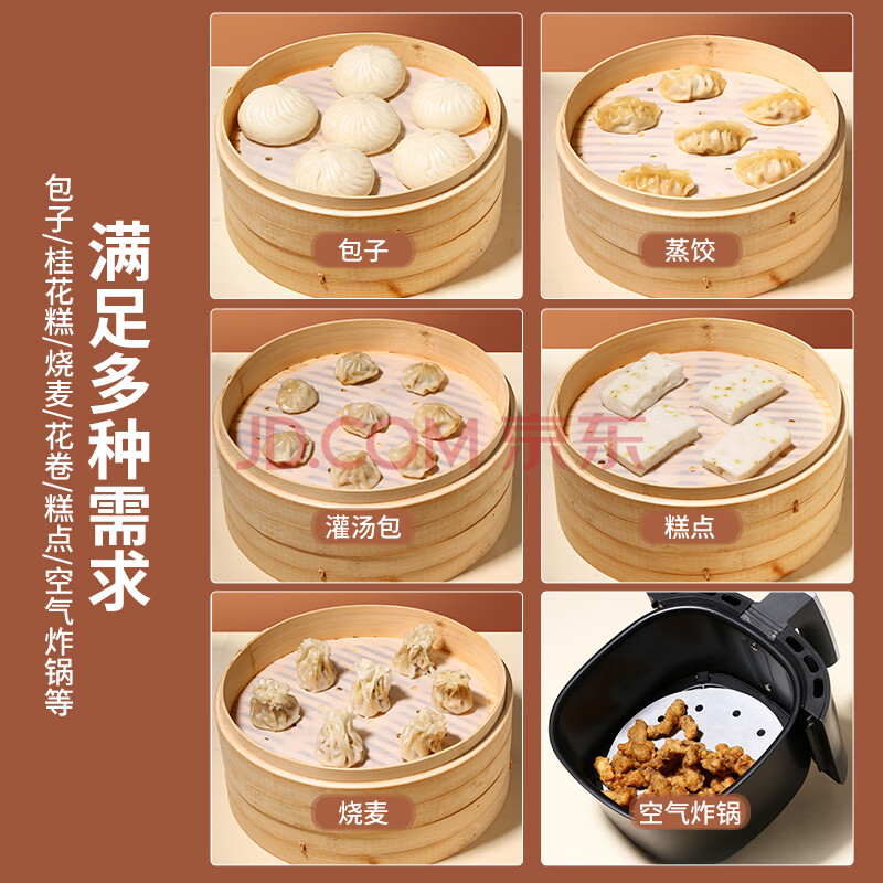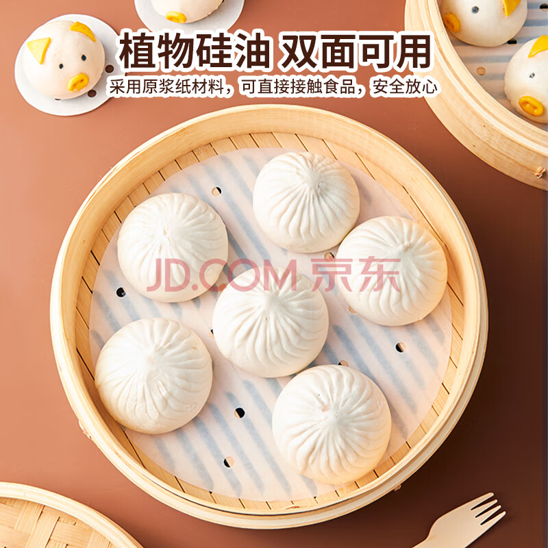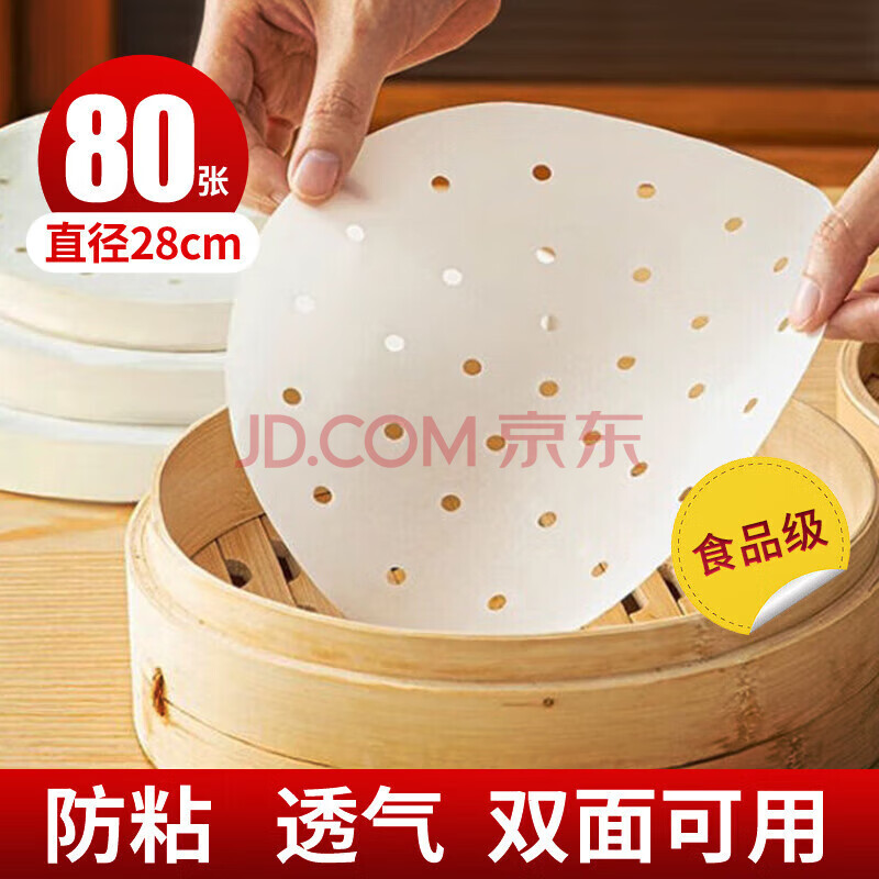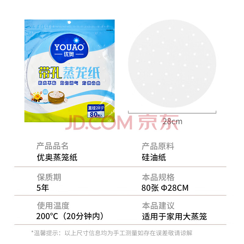 商品相册:优奥一次性蒸笼纸28CM*80张圆形带孔包子垫纸蒸笼屉纸馒头纸硅油纸第