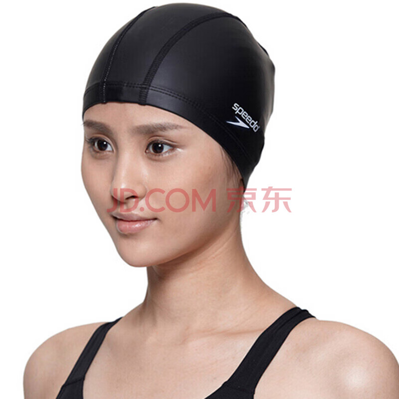 商品相册:速比涛(Speedo)泳帽经典硅胶涂层三层面料柔软舒适游泳帽 黑色第1张/共8
